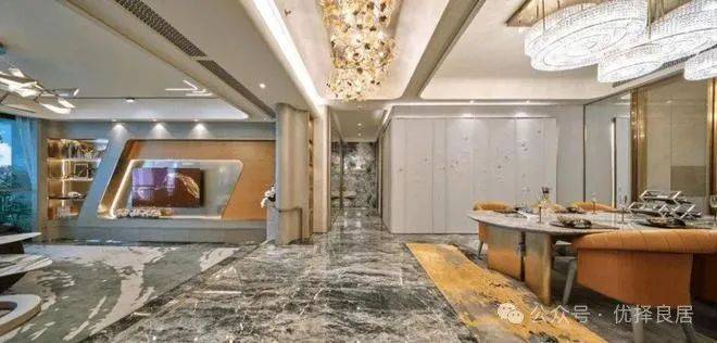 因此每一款样板间大到入户大门、玄关对景、客厅背景整面珍贵石材和餐厅用材的互相呼应、卧室墙面的大面积扪皮,都无不潜心雕琢;