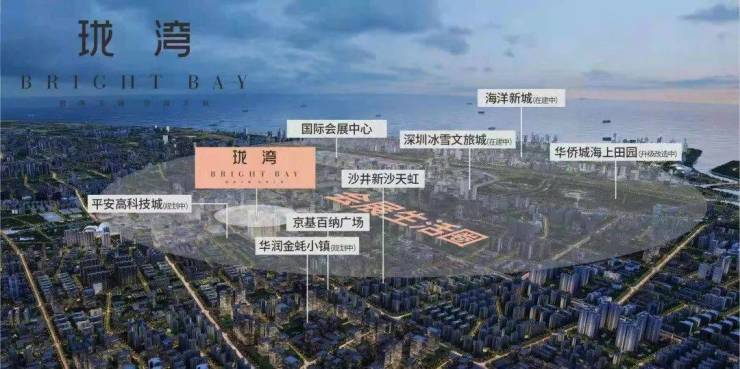 周边环绕着西部最值得期待的项目,西边3公里范围内有海洋新城、国际会展中心、冰雪文旅城、海上田园等等重磅规划,东侧有华润金蚝小镇、平安高科技城等旧改巨头。