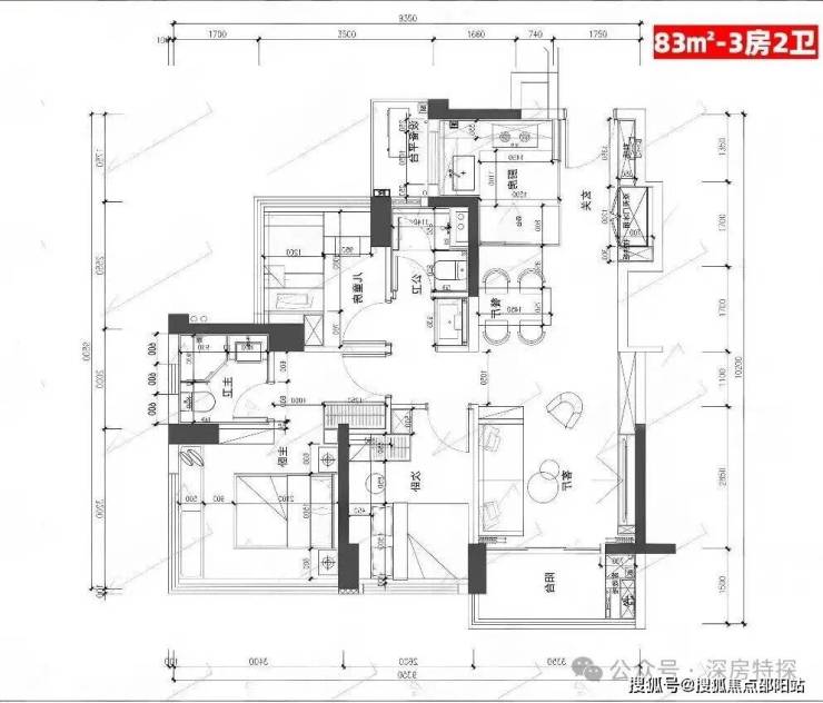 乐城3期是新规产品,得房率得到很多提升,高达100%,其中83㎡做到了3房2卫,99㎡竟做4房2卫。另外乐城3期都是非超高层(29-32层),所有单元均为3梯6户,户型朝向错开设计,确保每一户都是全南向户型,采光充足。在装修方面,也进行了全面升级。