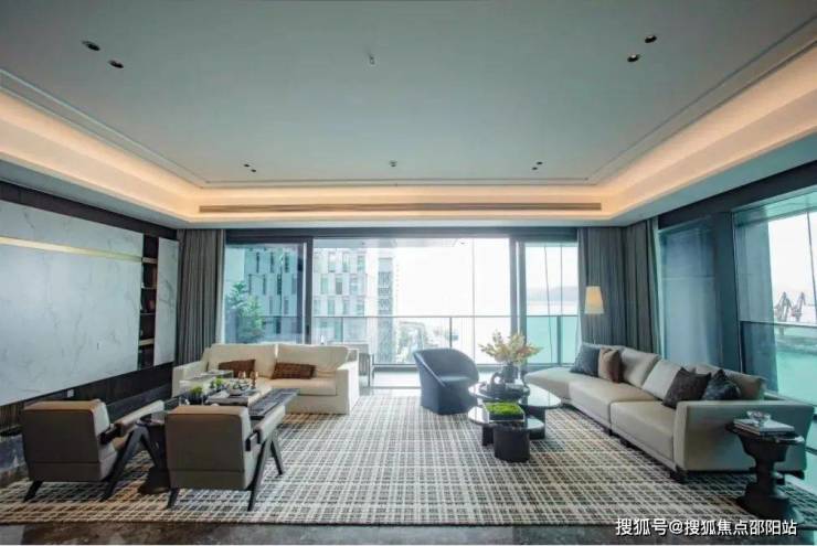 项目主打约380平方米的大平层,专梯入户,私密性极强。客厅设计有近9米的大开间,进深近10米,层高3.6米,净高约2.7-3.1米,空间感十足,尽显奢华品质。阳台设计为L型阳台,双面景观,大落地窗,采光无敌。主卧为东南向海景主卧,约4.2米开间,大尺度独立衣帽间及主卫,舒适感十足。建面约380㎡大师艺术美学样板将空间形制与生活美学演绎到极致,以LDKB一体空间体系设计手笔打造约9米开间大客厅,搭配来自全世界的经典家居作品,营造精致大气、雍容典雅之感的会客空间,彰显主人超乎想象的修养与品味。