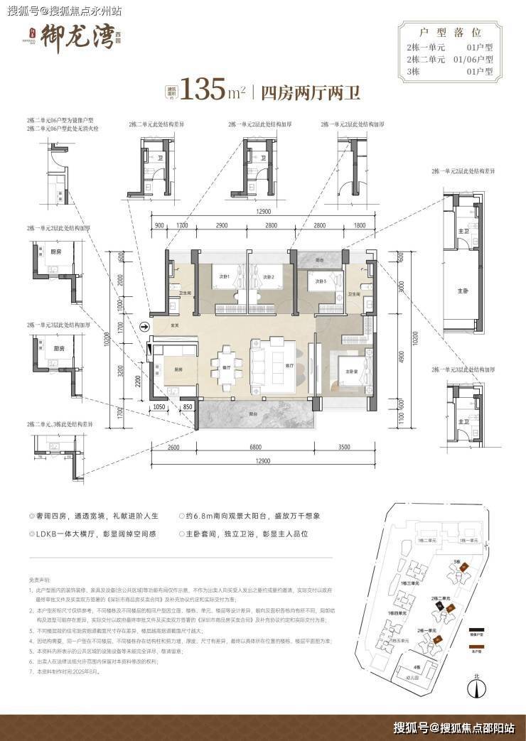 135㎡² 4房2卫:作为项目的“终极改善款”,采用横厅设计,客餐厅开间达6.8米,连接南向大阳台,整体空间气场开阔,非常适合家庭聚会,LDKB一体化设计打破了空间壁垒,四开间朝南确保全屋采光无死角。U型大厨房、双卫生间三段式分离以及主卧步入式衣帽间等设计,充分满足了高端改善家庭对品质生活的追求。