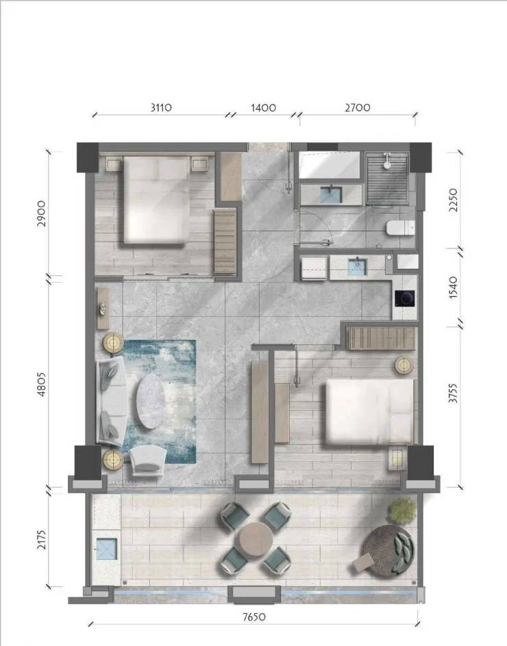 C3户型:两房一厅一卫