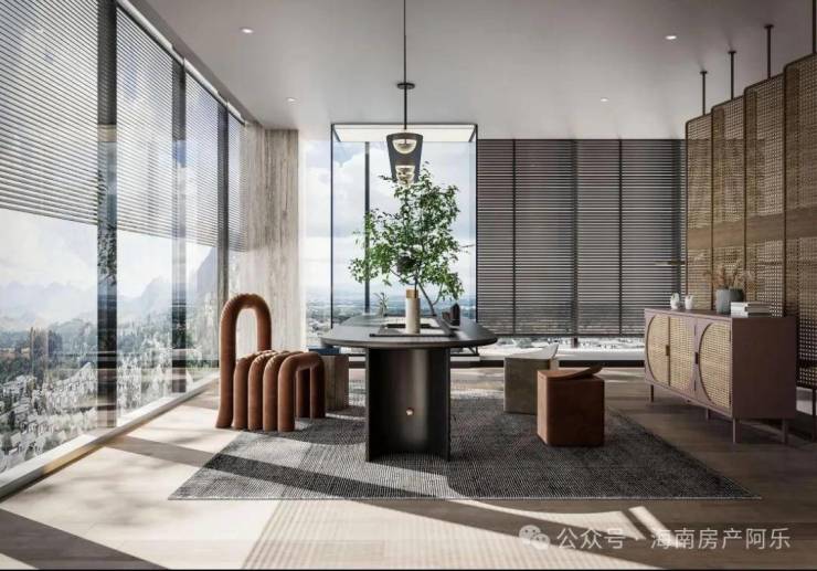 依山揽水,奢阔明亮的绿色生态大平层,270度观景,轻松兼具商务、社交、娱乐、接待、居住等功能。