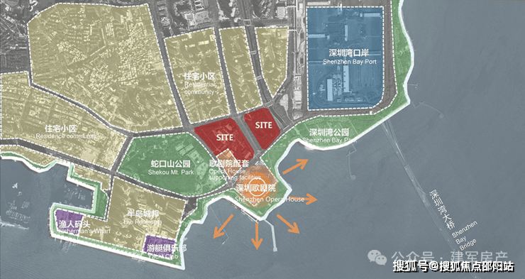项目位于东角头片区,三面环海且无遮挡,推窗即揽深圳湾海景,西侧是蛇口山公园,南侧紧邻在建的深圳歌剧院——这座地标建筑未来将成为大湾区文化新中心。
