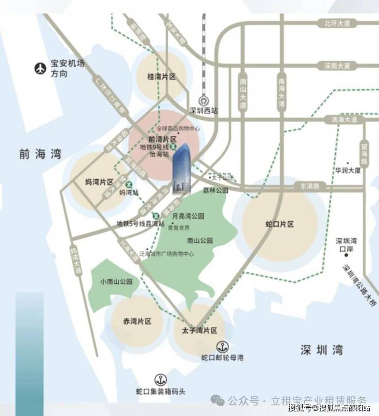 11、项目说明:前海门户,生态绿氧,自持商务写字楼,月亮湾大道、广深沿江高速首排封面,360°山海景观,奢享低密生态办公。背靠大小南山,俯瞰前海湾,助力企业发展风水宝地,园林式管理,生态与商务和谐共融。