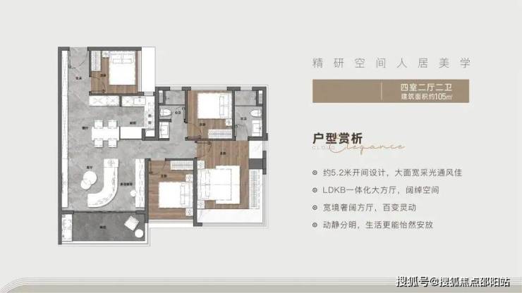 作为广州住宅计容面积新规后首批入市项目,户型使用率超 100%,部分达 110%。主力 88-142㎡三至四房均采用 LDKB 一体化设计,88㎡三房做到约 5 米客厅开间,105㎡四房实现约 5.2 米大面宽,南北通透、采光通风俱佳。项目为 2026 年 6-12 月精装交付的准现房,可实地查看实体楼与样板间。
