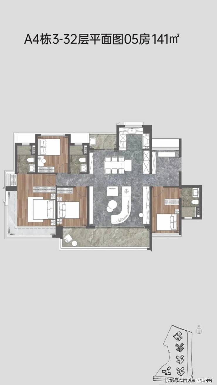 4. 143㎡ 四房二卫户型