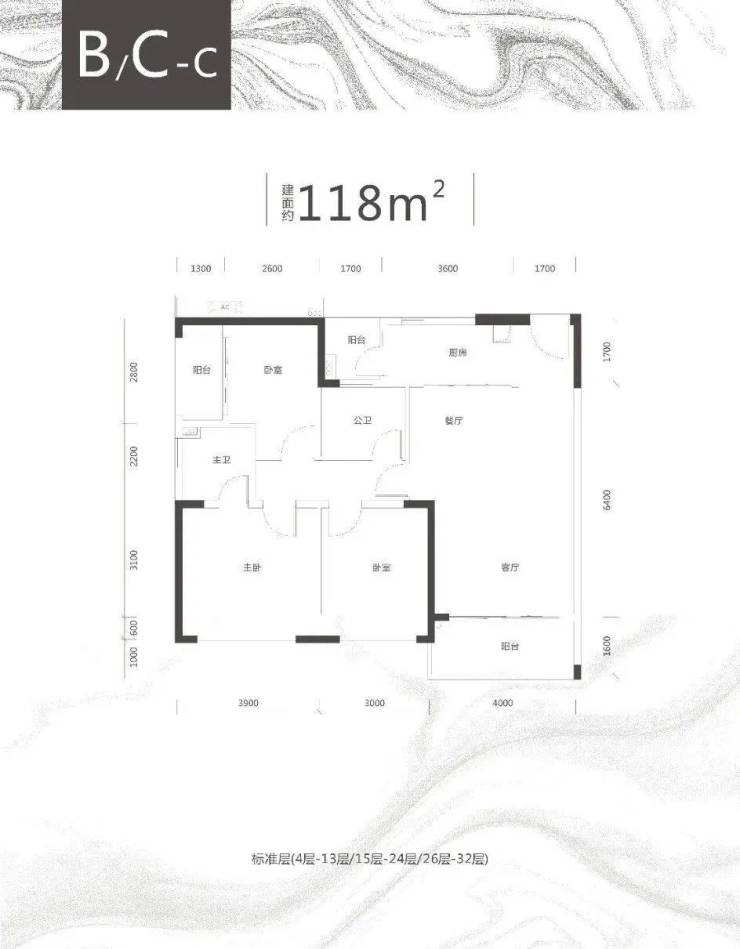 云玺锦庭C栋B/C/E户型、约118-119㎡三房两厅两卫