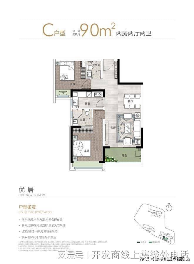 90㎡二房二卫,折后单价 8.2-8.7 万 /㎡,折后总价 740-780 万;