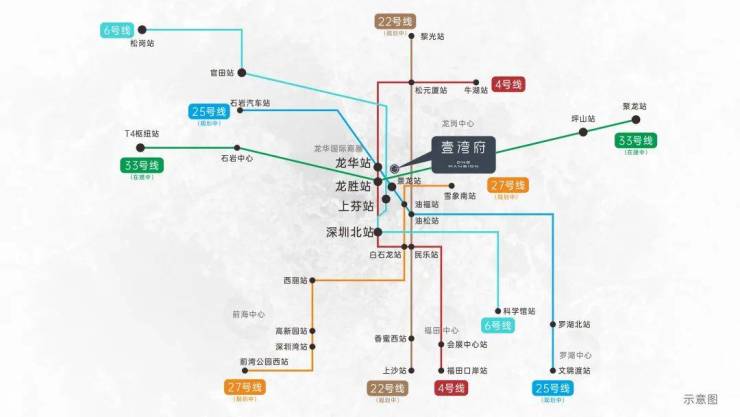 六地铁:4号线龙华站;6号线上芬站;22号线(规划中);25号线景龙站(规划中);27号线(规划中);33号线(在建中)