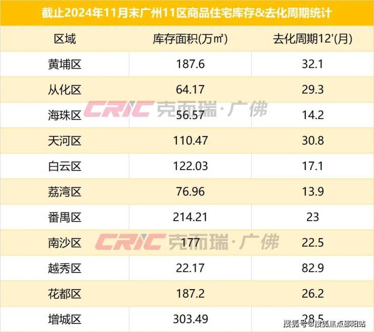 此外值得一提的是,今年以来,黄埔旧改动作频频,包括文冲东、双沙等多个项目的陆续入市,克而瑞数据监测显示,截止11月底,黄埔区商品住宅库存面积187.6万㎡,去化周期32.1个月,无论库存规模还是去化周期均高居全市前三。