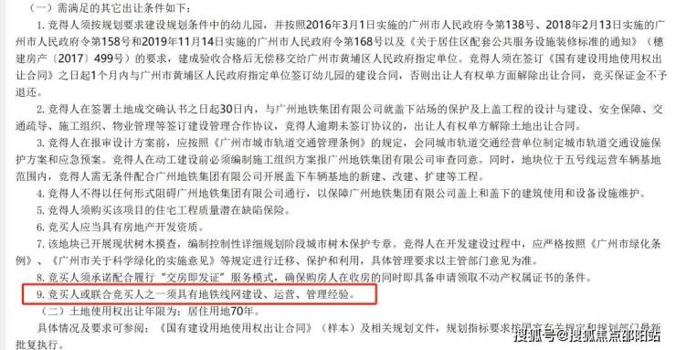 值得注意的是,明确要求竞买人或联合竞买人之一须具有地铁线网建设、运营、管理经验。