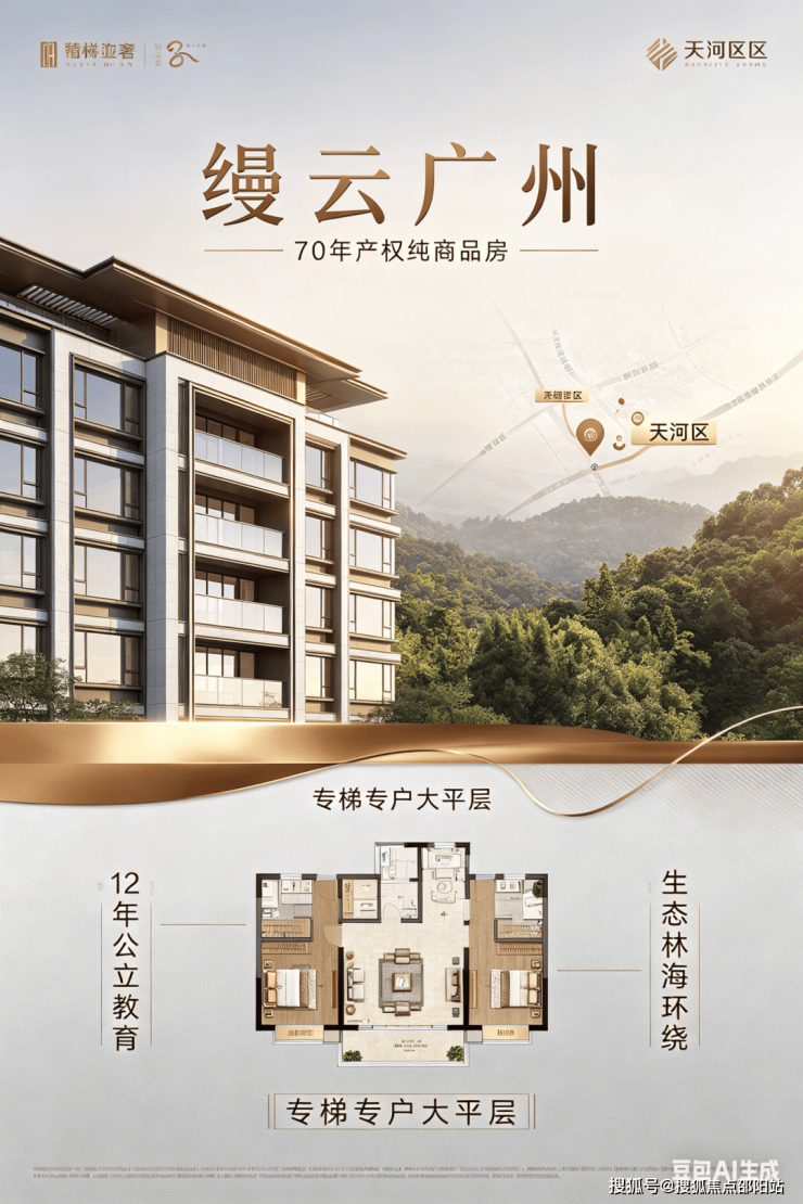 缦云广州位于广州天河区智谷 CTD 核心、奥体板块,是合生创展集团打造的战略级顶序作品,也是天河核心区罕见的低密半山生态奢宅。项目总占地约 8.1 万㎡,总建面约 37 万㎡,由国际顶尖设计团队操刀,采用现代简约建筑风格,全铝板幕墙外立面,围合式布局搭配约 71 万㎡原生林海。产品主打建面约145-315㎡的纯住宅大平层,货量稀缺(仅约 1270 户),层高约 3.1-3.3 米,拥有270° 环幕观景与 4.8 万㎡中央园林双重视野,以 “半山森幕行宫” 的尺度重新定义广州塔尖居住标准。