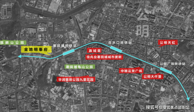金地明峰府位于光明区马田街道地铁6号线薯田埔站旁,南临松柏路。