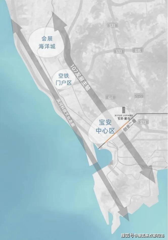 位于西部黄金中轴发展线上的——新安,占据前海“腹地”,前海+宝安中心区双中芯辐射,城市核芯资源尽皆于此。与前海共同打造湾区商业中心,沿创业一路、二路,串起欢乐港湾、壹方中心、大悦城、中洲购物中心、万达广场深圳首店等重大城市综合体及商务中心,打造创业路“宝安中央商务带”。