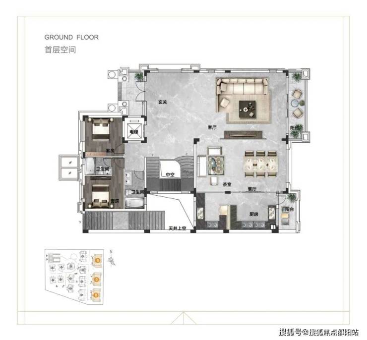 建面约361㎡、赠送面积215㎡、两厅六房设计