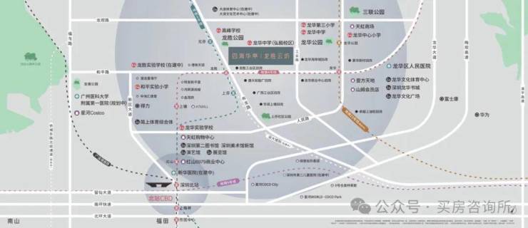 除此之外,1公里范围内有龙华区高峰学校、龙华中心小学、龙华第三小学。
