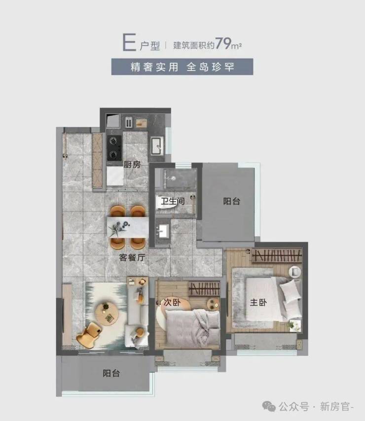 79㎡两房 南向双阳台+3.15米层高 首付38万起(限6月)