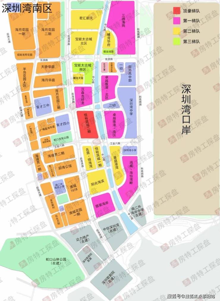 深圳湾片区主要是指后海滨路以东,海滨大道以南,沙河西路以西所合围起来的区域,分为后海金融商务区、体育中心区、住宅区、口岸四个大区域。