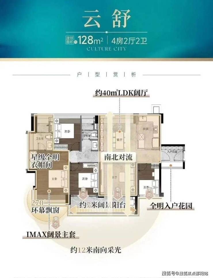 建面约128㎡的四房,则做到约16米南向采光、南北对流,且拥有一个约40㎡LDK阔厅,碾压市场同面积产品。