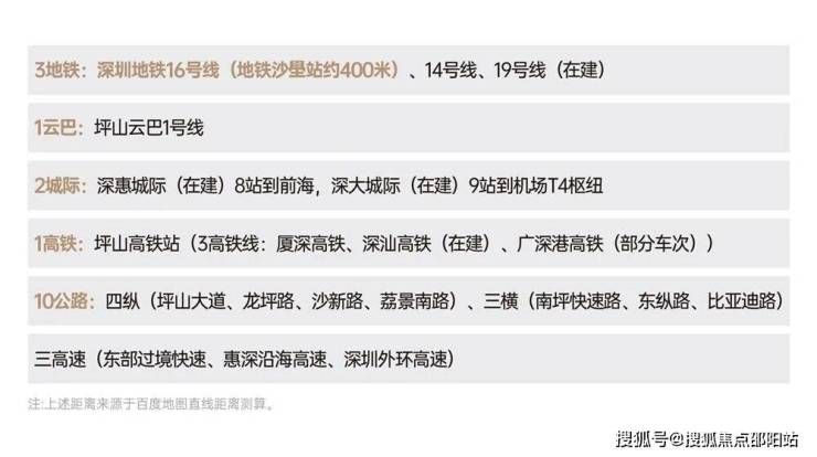 多维交通畅达坪山,云巴 1 号线轻松解决短途出行,坪山高铁站 3 条高铁线打通跨城通道,深惠城际(在建)8 站达前海、深大城际(在建)9 站抵达机场 T4,通勤效率 MAX;地铁 16 号线沙壆站约步行400 米即达,14/19 号线(在建)进一步拓宽出行选择,再加上 3 高速与 “四纵三横” 公路网,轻松畅行内外!