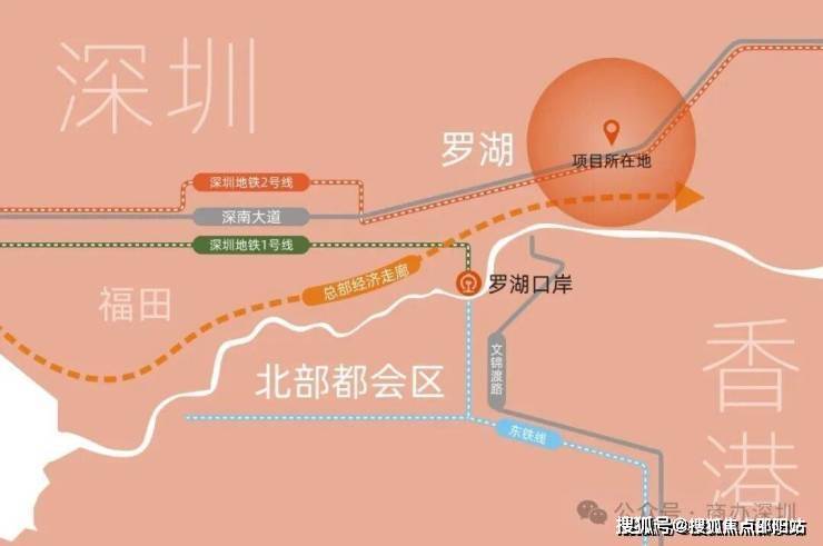 罗湖位于深港互动圈前沿,邻近香港“北部都会区”,引入香港东铁,实施“一地两检”,打造深圳火车站-罗湖口岸片区,罗湖将成为深港轨道中枢。项目近邻罗湖口岸,与香港高效通勤,坐享深港都市圈发展红利。