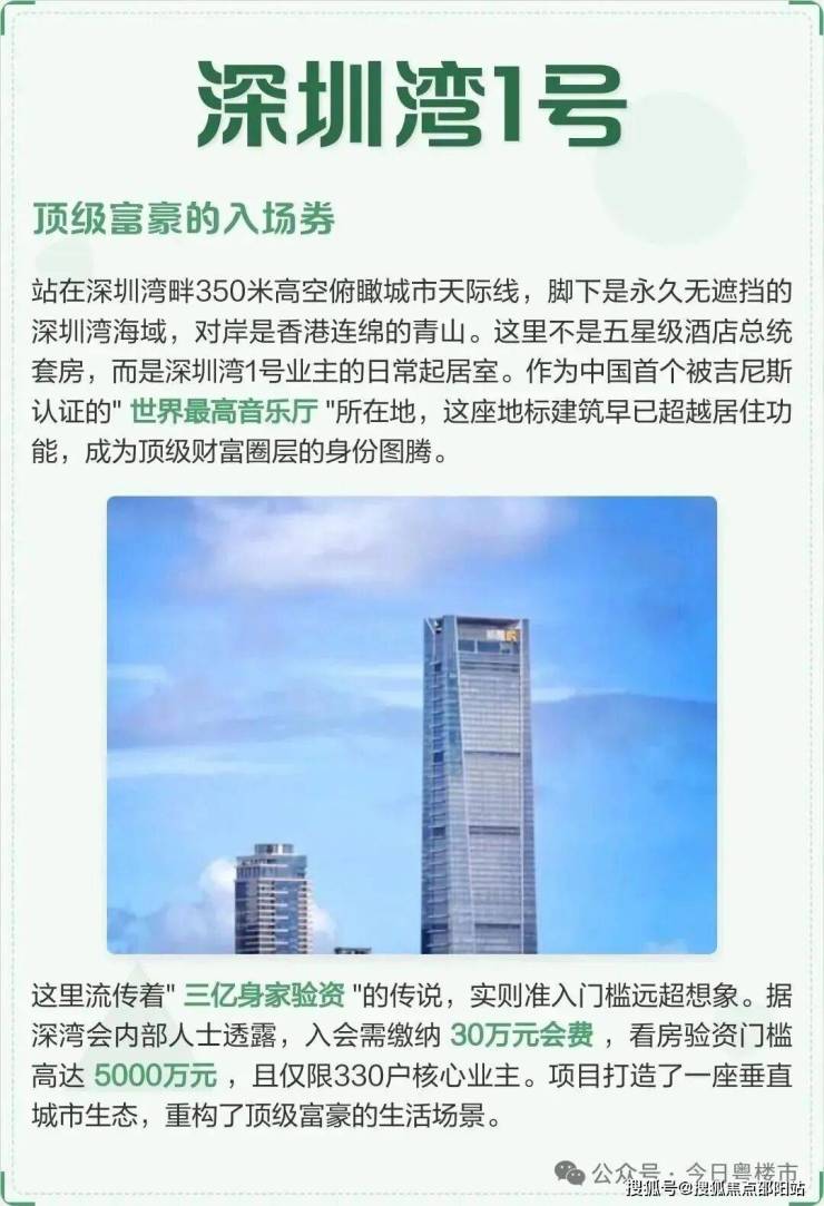 作为中国三大豪宅之一的深圳湾一号永久看海豪宅,由鹏瑞集团开发,地处深圳湾核心地段,占地约46000平,为深圳地标型建筑群。大开间海景房,直面一线海天。所有楼层视野非常开阔,俯瞰香港和深圳,浩瀚海景尽收眼底。深圳湾一号还配有深湾会这个世界顶豪圈层的专属会所,齐聚马云等世界名流。