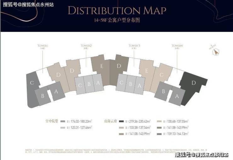 共58层,地下三层为配套车库,1-2楼为奢享配套商业,规划特色餐饮、名车广场和银行;二楼规划为大型高端酒楼,3-4楼为阳光车库,13-58楼为公寓及配套园林、游泳健身会所。