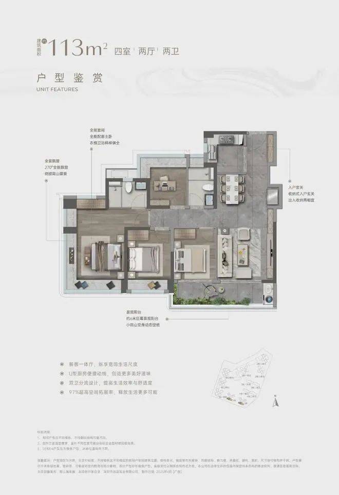 建面约113㎡的大四房有横厅和竖厅两种户型设计,