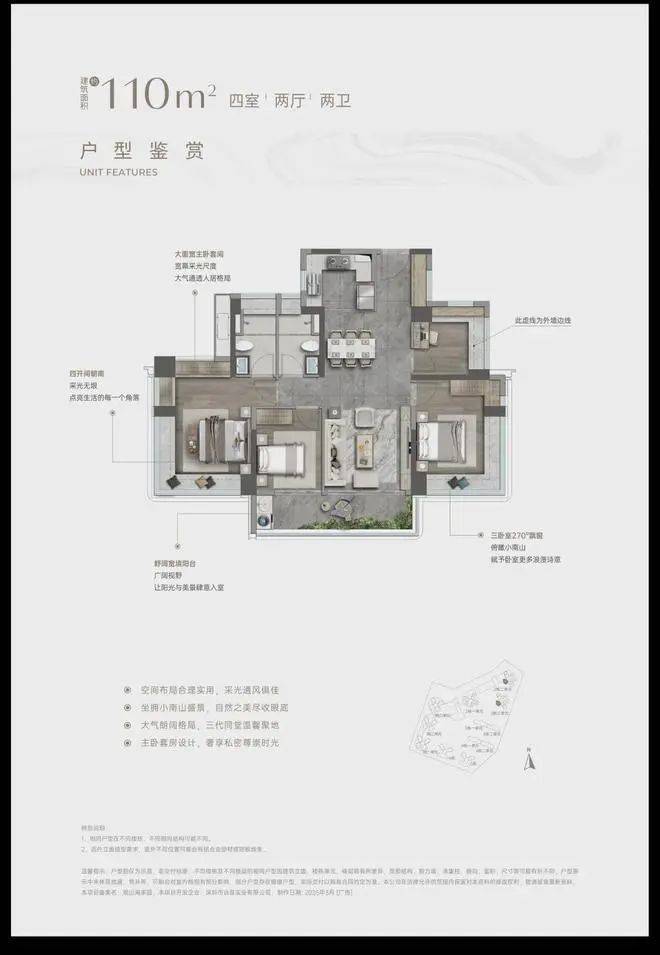 ⛰美学社区:项目规划酒店式入口大堂+归家水庭院,风雨无阻礼序归家,“一轴两大院”园林景观布局,打造轻奢自然的山居美学低密社区:容积率仅约2.65,无政策保障型房源,小区低密且纯粹一线山景:零距离大南山,原生都市绿肺在门前绵延,绿植葳蕤,难得谧静限高80米:项目限高80米,楼栋高度顺应山体走势,高低错落,结合公建化立面,将打造与自然融合的城市天际线