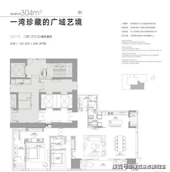 公寓面积段覆盖300-1000㎡(具体包括300㎡、400㎡、460㎡、570㎡、1000㎡等大平层),起步户型预计200㎡以上,主打“总裁级大平层”,满足高净值人群对空间尺度与私密性的需求。