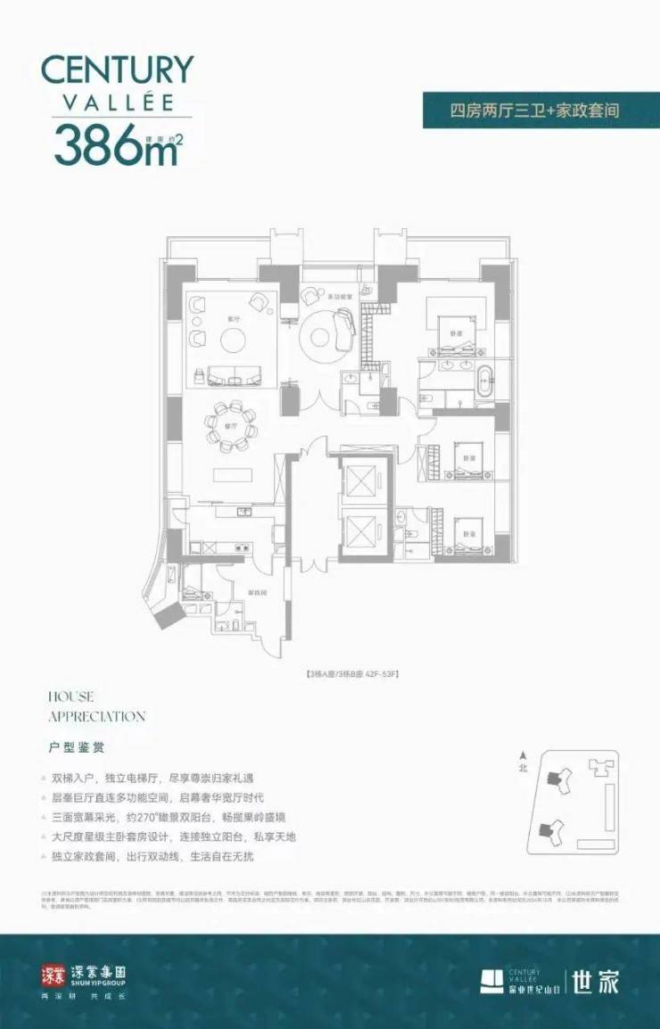 深业世纪山谷顶奢大平层住宅,豪无人性的梯户比,8梯三户,233㎡-386㎡世家大宅、420-1080㎡云端复式,拥有头排高尔夫景观、深圳湾、塘朗山景观,是区域内稀缺的景观大平层住宅产品,值得高净值人群的青睐与关注。