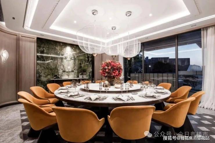 家宴厅设以可容纳16人的圆形餐桌,凝聚家庭温情,诠释圆满之寓意。
