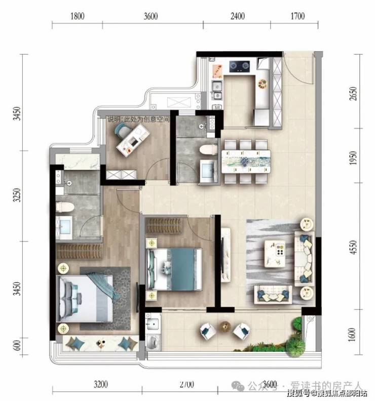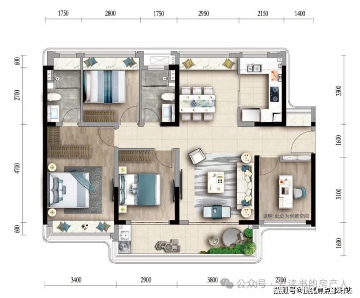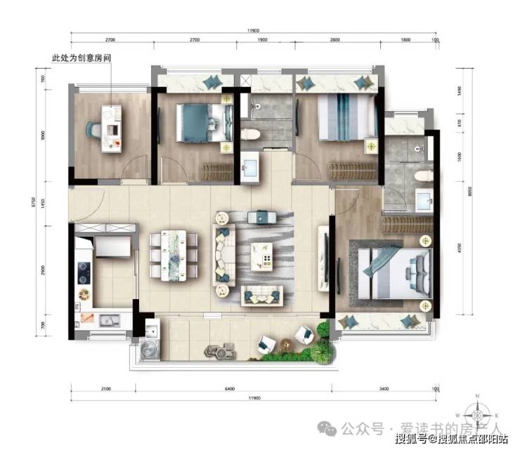 舒适3+1房:119㎡