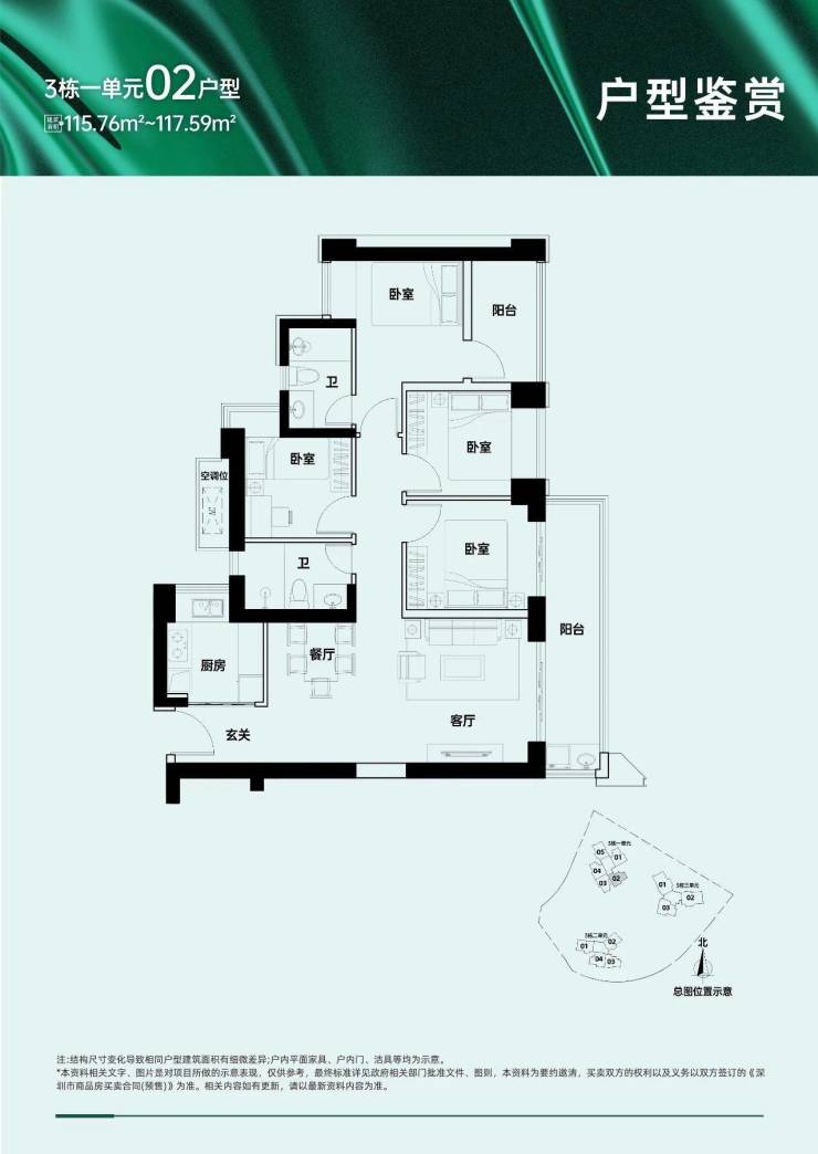 户型面积布局02115-117平四房两厅两卫