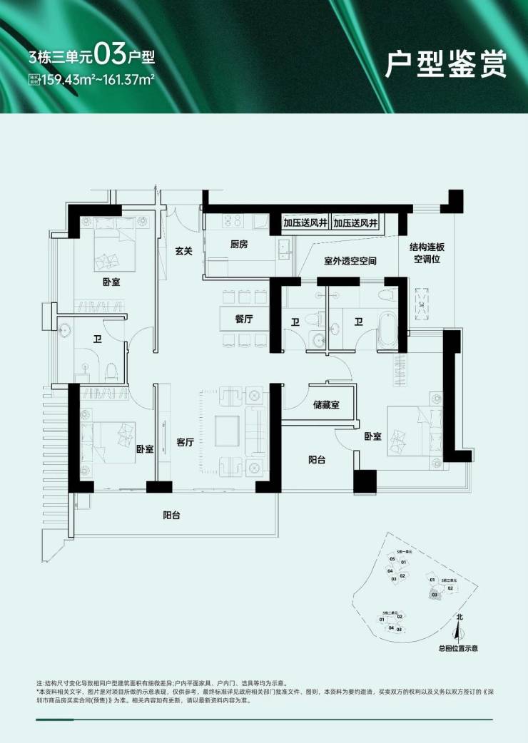 户型面积布局03159-161平四房两厅三卫