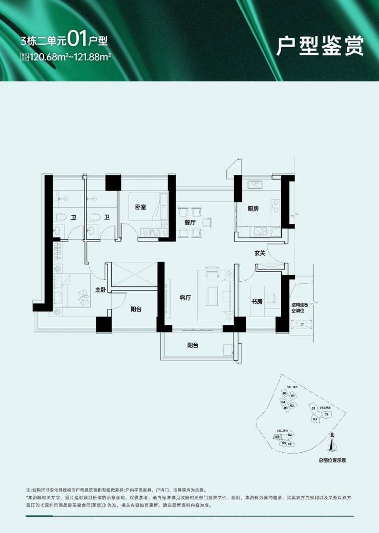 户型面积布局01120-121平四房两厅两卫