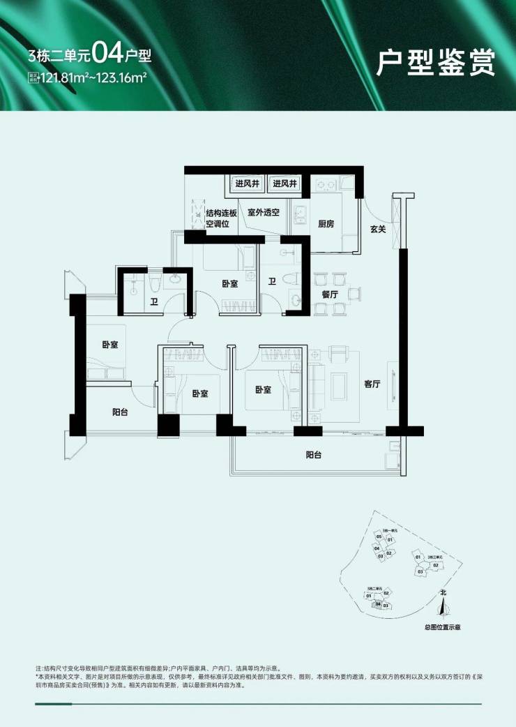 户型面积布局02120-121平四房两厅两卫