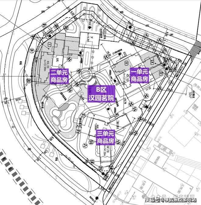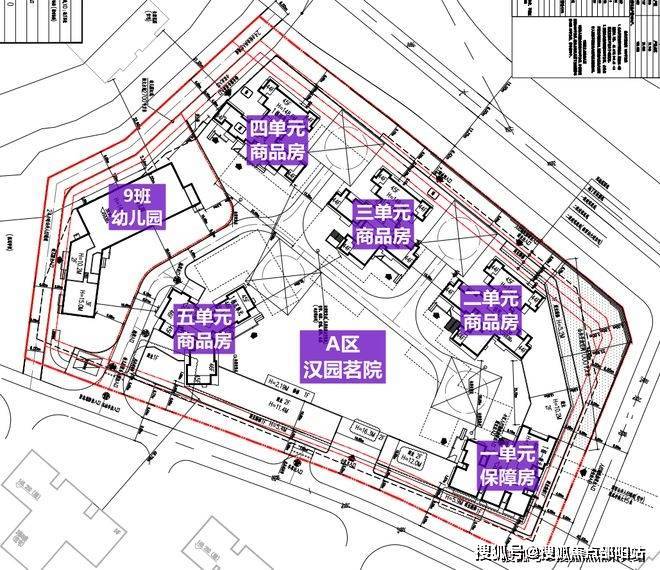 汉园茗院分两个地块A区和B区,A 区是由4栋高层住宅和1栋保障房组成