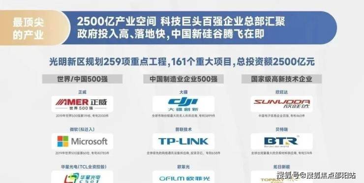 据2022年1月27日深圳市光明区人民政府印发的《光明区战略性新兴产业发展“十四五”规划》,力争至2025年打造3-5个百亿级平台引领型企业生态圈,百亿级龙头企业达7家、年产值超10亿元的企业超50家、上市企业数量超30家、省市级“专精特新”中小企业达100家、专精特新“小巨人”企业达18家、制造业单项冠军企业(产品)达7家。未来将集聚更多高精尖人才,高阶客群不愁租。