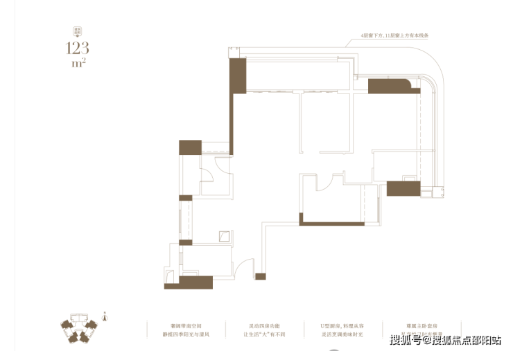 低区4-11层,约64户,主推建面约108-123㎡三四房,精准定位刚需改善群体;