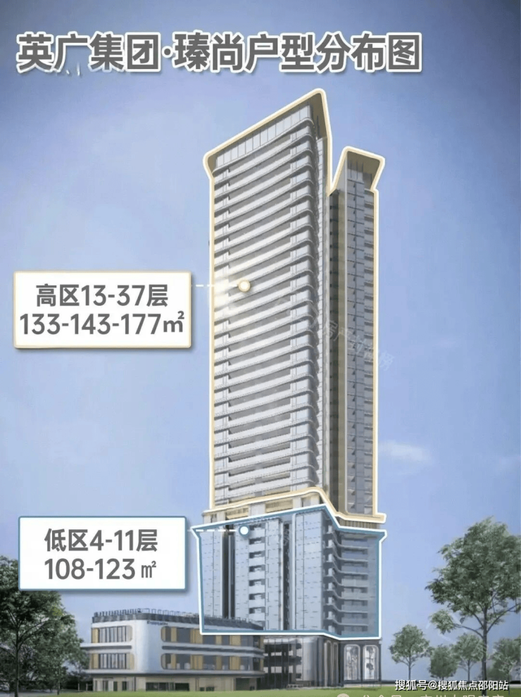 高区13-37层,约144户,主推建面约133-143-177㎡四房,专为高端改善人群量身定制。