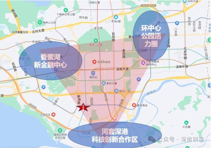 最新“十四五”规划中,福田定位湾区总部经济核心区,并聚焦河套深港科技创新合作区、香蜜湖新金融中心、环中心公园活力圈“三大新引擎”,项目位于三大引擎的三角地带核心位置,坐拥众多规划和资源。