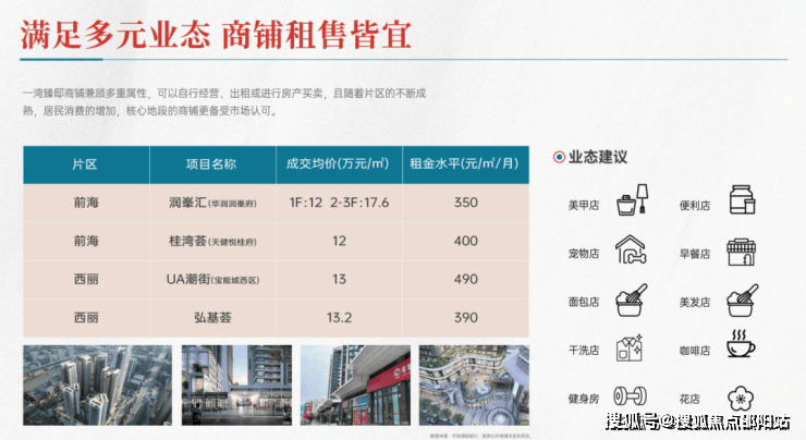 ◎24小时全覆盖商业机遇:无论是白天庞大的办公、师生客群,还是晚上项目社区及周边居民的消费,以及前海运动公园吸引的休闲人群,均成就商铺365天、24h的全覆盖商业机遇。