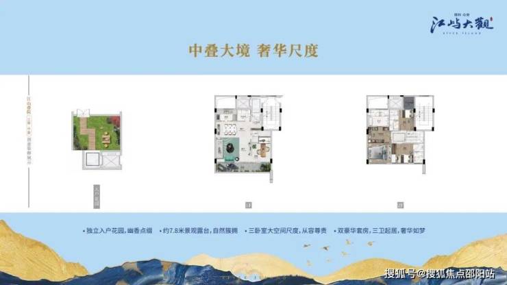 建筑面积约13万方江岸巨著,集商务、办公、居住于一体,主力产品为江山叠院、江景公馆,自规划美学园林、科创广场、文化中心、老年中心等奢级配套,属于城央之上的纯粹高端住区。
