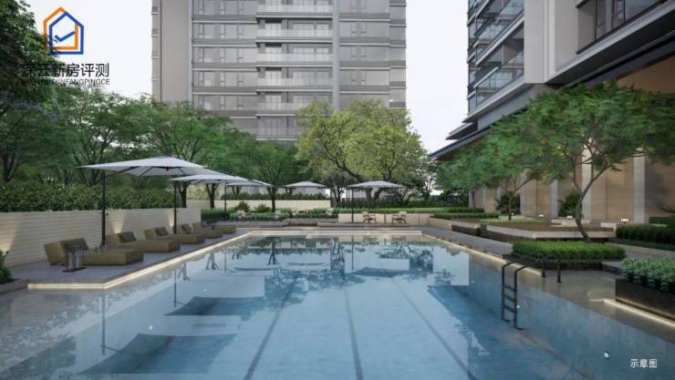 【自然水岸游泳池】:约 400㎡无界亲子泳池,联动 7 栋架空层设更衣区,绿植与跌水景观营造度假感。