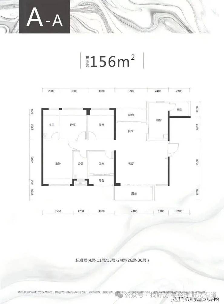 A栋平层户型为154-156㎡的四房设计,空间布局更为合理,南北通透,适合大家庭居住。