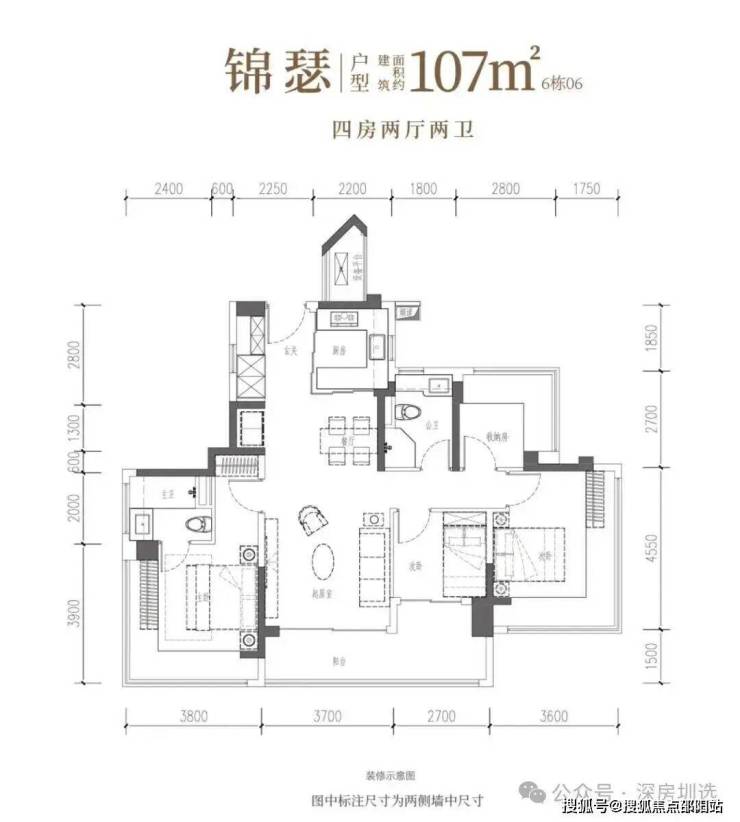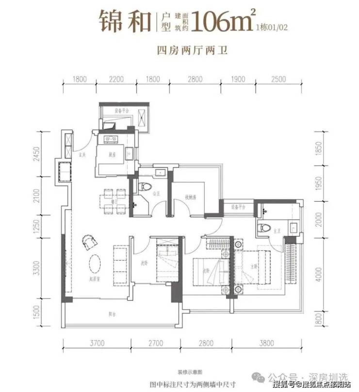 •锦和·约106㎡四房两厅两卫:南向四开间,一线园林景观,自在奢想