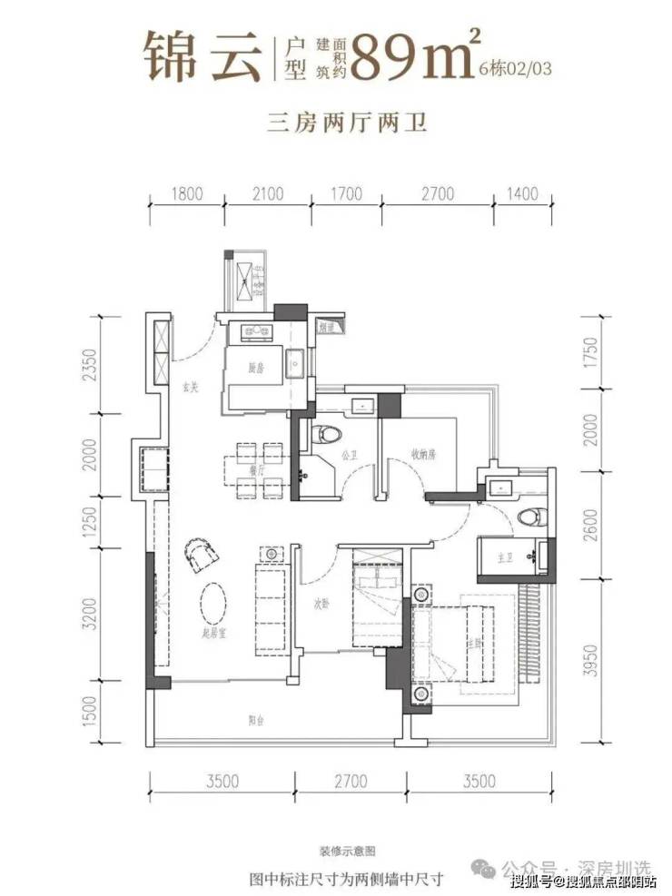 •锦云·建面约89㎡3房2厅2卫:南向阔厅,景致常驻,间间开阔,尺度舒适
