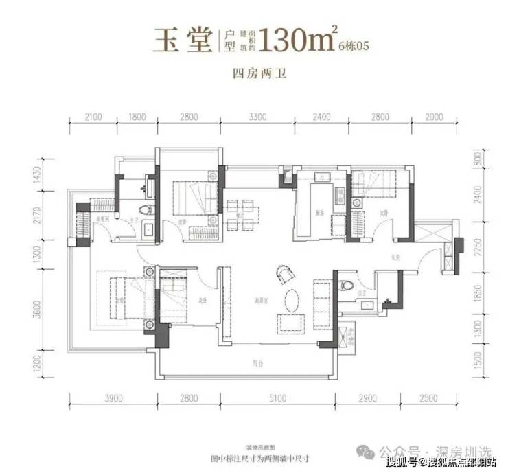 •玉堂·建面约130㎡4房2厅2卫:南向四开间,约14.7米IMAX光幕,尺度自成